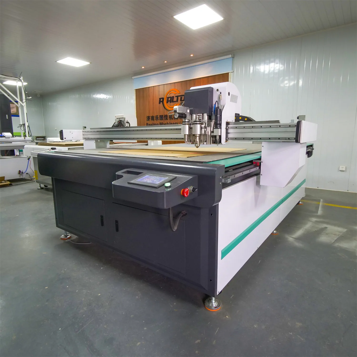 Built in 2005. Realtop Machinery (Jinan) Co..Ltd is located in Shandong Province. China. covering an area of more than 20.000 square meters. It is one of the most advanced flexible materials cutting machine manufacturers in China. We have rich experience and enthusiastic design team and strong core factory.As a high-tech enterprise specializing in R&D. production. sales and service of CNC cutting equipment. Realtop CNC Group Company has a group of top talents with rich experience in development and application. With more than 13 years experience. we are focus on digital cutting machines for leather. paper. stickers. foam. carpet and many other flexible materials cutting.RealTop CNC – Always your best solution provider for Cutting and Engraving CNC Machines. And Your visit to our factory is always highly welcomed here.